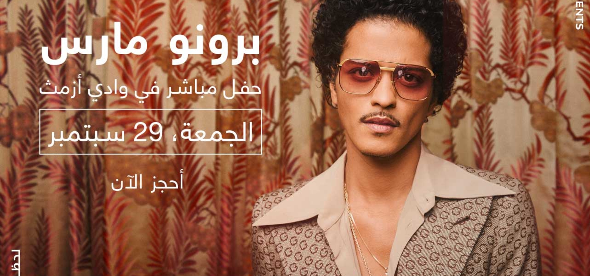 ويفتتح برونو مارس السلسلة المنتظرة التي تضم عددًا كبيرًا من الحفلات الموسيقية والغنائية في مدينة العُلا، ويشارك فيها نخبة من النجوم المحليين والعالميين. سيقدم الفنان العالمي حفله يوم الجمعة 29 سبتمبر، في نفس الموقع الذي يستضيف فعالية أزِمُث، الفعالية الموسيقية الترفيهية في الأسبوع الذي يسبق تاريخ الحفل.