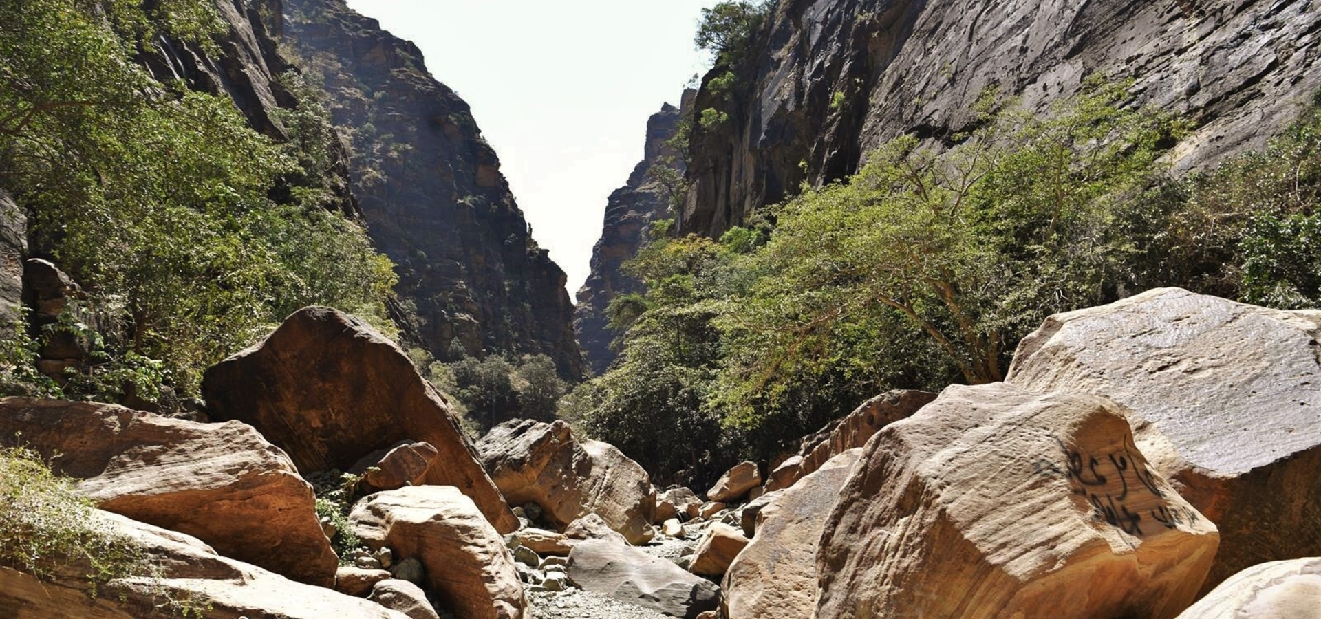 تُزين الوادي، الذي رسمت السيول معالمه عبر آلاف السنين، أشجار معلّقة تتدلى جذورها من بين حجر وصخر. يقصد الزائرون هذه الواحة الآسرة التي باتت تمثل معلمًا سياحيًا شهيرًا يرتاده المتنزهون على مدى العام. يسكن الوادي أخدود يلف السكون جنباته وسط طبيعة بكر في الطرف الشرقي من جبل "القهر" ويبلغ طوله نحو أحد عشر كيلو مترًا.