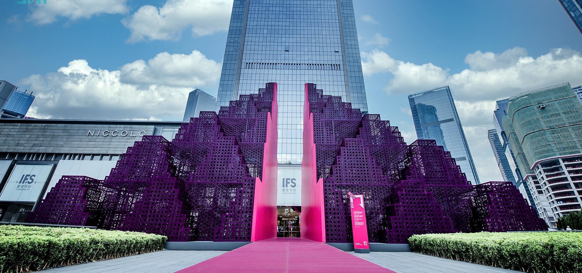 يبلغ ارتفاع العمل نحو عشرة أمتار، وعرضه 16 مترًا، وجرى صناعته من الخيزران الصديق للبيئة الذي يمثل علامة تجارية في المدينة الصينية التي كانت جزءًا من هوية الممالك القديمة، ويأتي العمل الفني في شكل هرم مدرج يعكس جمال الجبال المموجة في مدينة تشونغتشينغ، ويمكن لزوار المدينة الاطلاع عليه في ساحة المعرض حتى عام 2023.