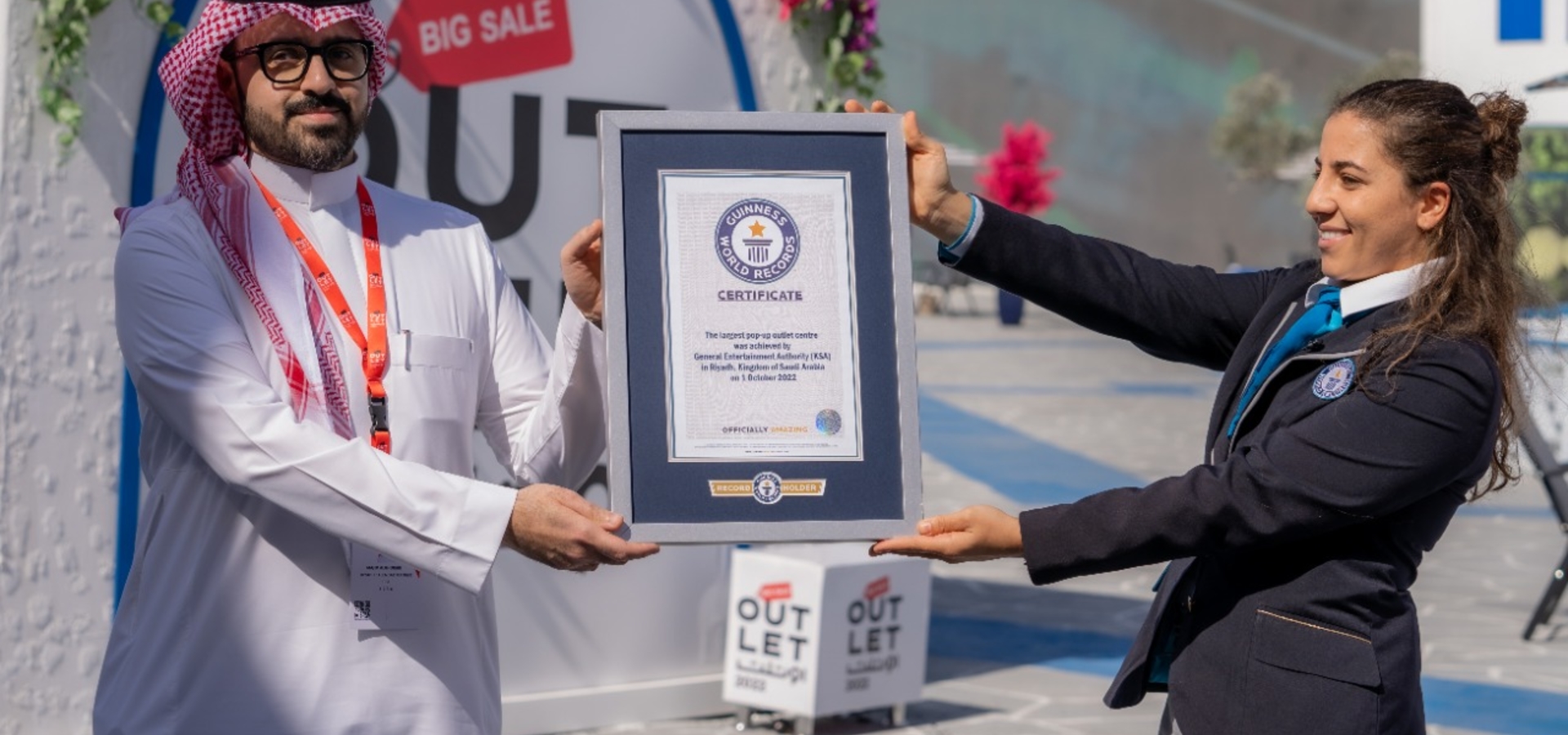 حققت الهيئة العامة للترفيه، رقمًا قياسيًّا جديدًا في "غينيس" للأرقام القياسية، من خلال مهرجان "أوتلت 2022" للتسوق، والذي بدأت فعالياته بوصفه أكبر "أوتلت" مؤقت في العالم، بمساحة تصل لأكثر من 145 ألف متر مربع.