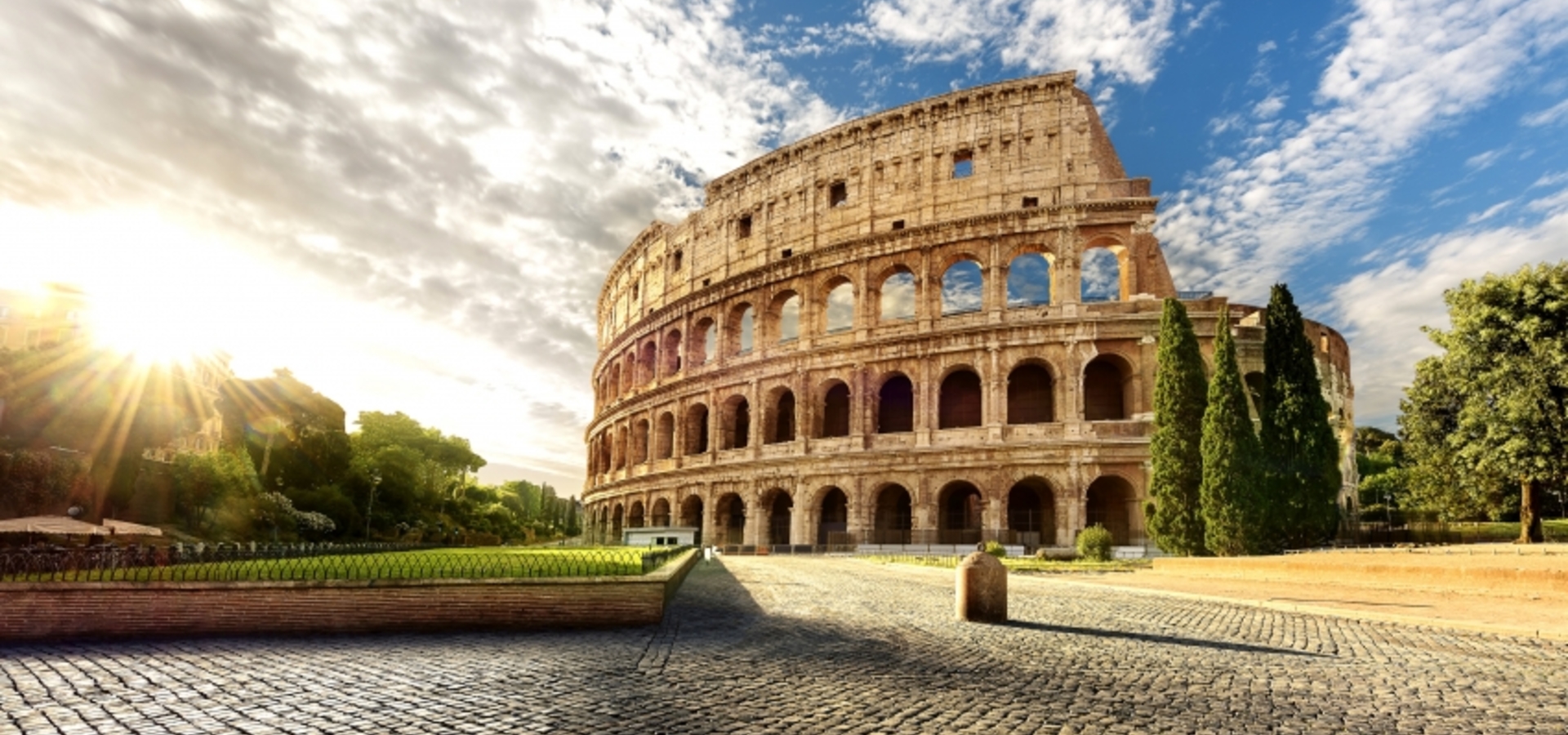 تبدأ الرحلة في روما بزيارة مدرج الكولوسيوم أشهر معالم المدينة، بل وأحد أشهر المعالم على مستوى العالم. يناهز عمر هذا المدرج ألفي عام تقريبًا، ويعد من أعظم أعمال العمارة الرومانية. وقد اشتهر بكونه حلبة للقتال. أعيد ترميمه جزئيًا بعد أن تسبب زلزال عظيم في القرون الوسطى بهدم جزء منه. الجولة داخل الكولوسيوم تتضمن النزول إلى شبكة من الممرات تحت الأرض للوقوف على الأبواب والتقنيات التي كانت تستخدم لنقل الحيوانات والمصارعين إلى الحلبة. كما يرتقي الزائر إلى الطابق الثالث ليحظى بإطلالة رائعة على هضبة بالاتين، والمنتدى الروماني الذي يقع إلى جهة الغرب من المدرج، حيث روما القديمة، وساحة بياتسا ديل كامبيدوليو. هناك تقع آثار لمبانٍ رومانية، وأعمدة ضخمة، وكثير من التماثيل والأعمال الفنية الأثرية، إضافة إلى القصر الملكي القديم، ومعبد فيستا، ومدرج كوميتيوم. تجسِّد هذه المنطقة بالكامل إرثًا تاريخيًا مذهلاً، يتجسد في كل ملامح الأبنية التي تنتشر في المكان وتعبر بصورة واقعية عن حضارة روما القديمة التي يكتظ بها قلبها التاريخي.