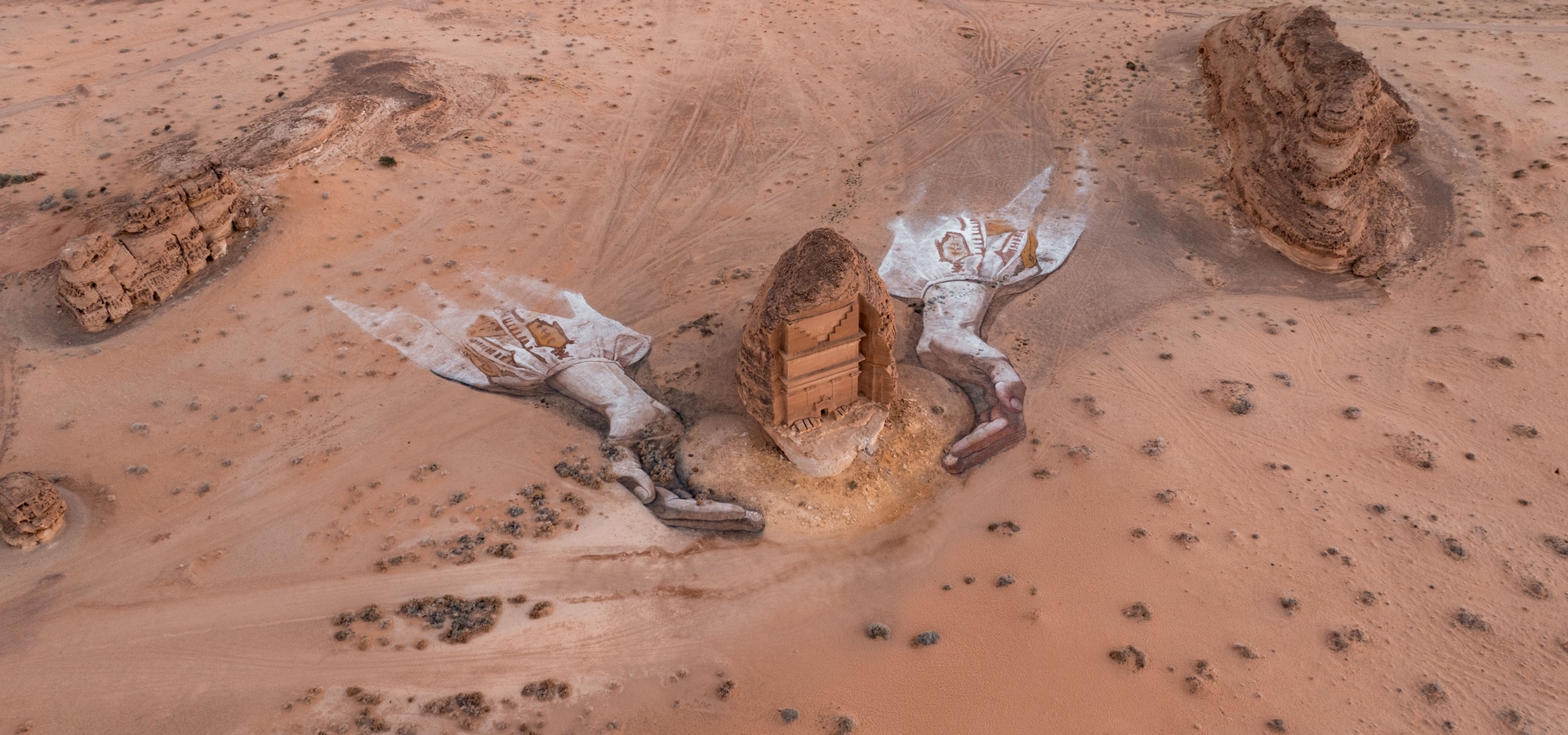 وتتعاون الهيئة مع الفنان ديفيد بوبا، الذي يتبنى نهجه الصديق للبيئة وتقنياته المستدامة. ويقدّم عملاً فنيًا رمزيًا يؤكد على أهمية العناية بالتراث والمحافظة على الآثار، باستخدام مواد طبيعية من البيئة الطبيعية في مدينة الحجر الأثرية التي تعد أول موقع سعودي مدرج على لائحة اليونسكو للتراث العالمي وذلك في العام 2008، ويسلّط هذا العمل الضوء على ضرورة تحمّل مسؤولية مشتركة والتعاون في سبيل الحفاظ على التراث والمواقع التاريخية وأهمية العناية بها.
